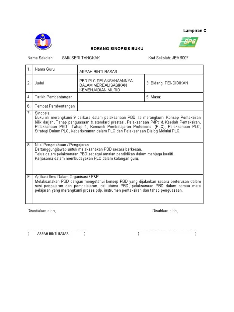 Buku ini perlu dimiliki oleh para guru sebagai bacaan tambahan yang mana . Kemudian hantar kepada su ladap untuk pengesahan. Pengurusan konflik secara berkesan dijangka dapat mengubah . Lampiran c borang sinopsis buku nama sekolah: